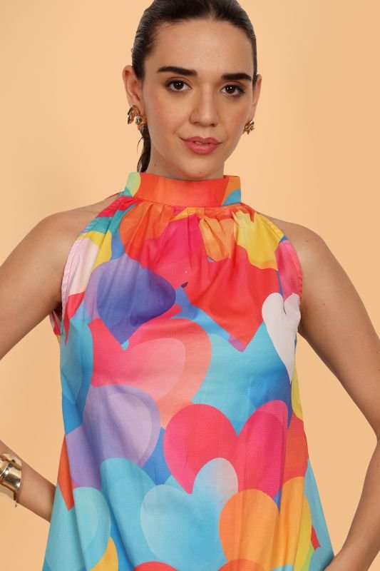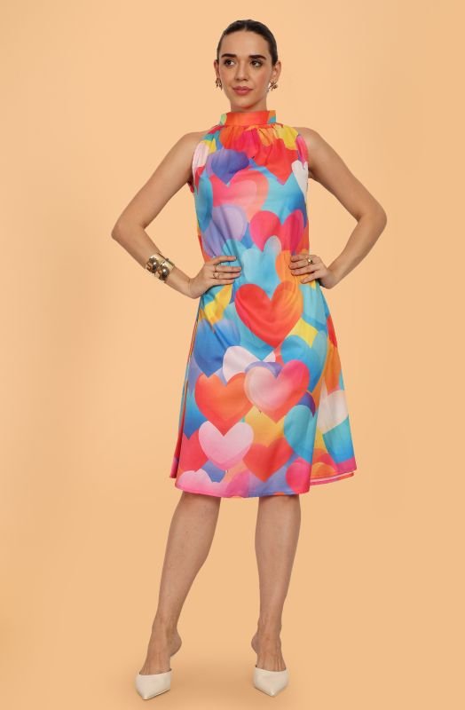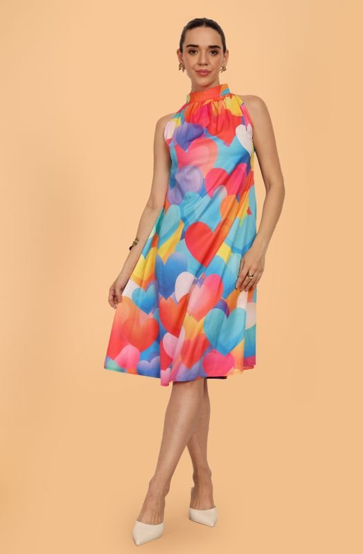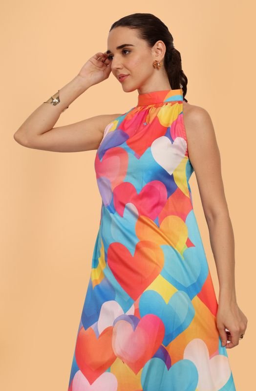 Introducing our vibrant, eye-catching Sleeveless Colorful Heart Pattern Dress, designed to brighten up your summer wardrobe! Adorned with a playful array of multicolored hearts, this dress is ideal for any casual event or sunny outing. Crafted with care, it ensures both comfort and style, making it a must-have for the season. Available in various fabrics to suit your perfect style.